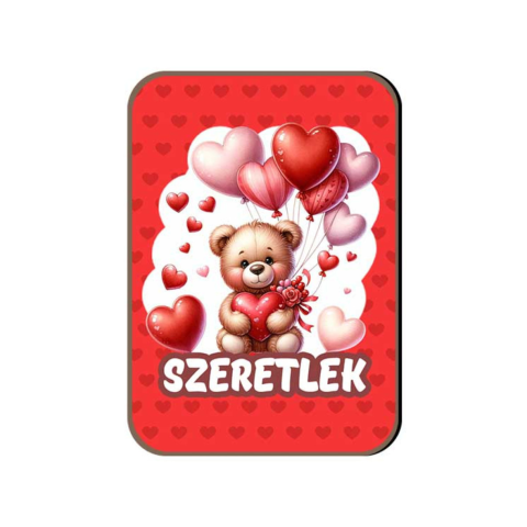 1 kép Fa hűtőmágnes, Szeretlek, maci