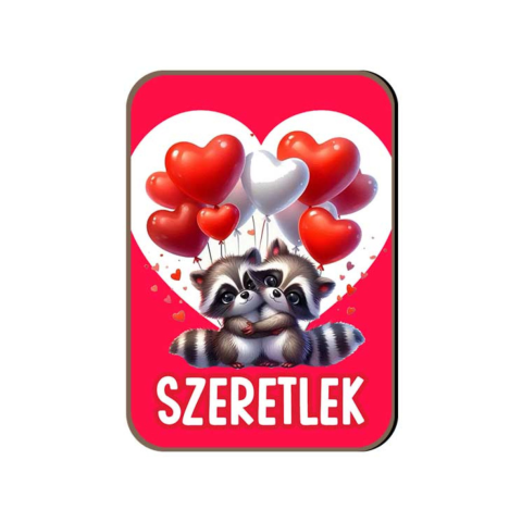 1 kép Fa hűtőmágnes, Szeretlek, mosómedvék
