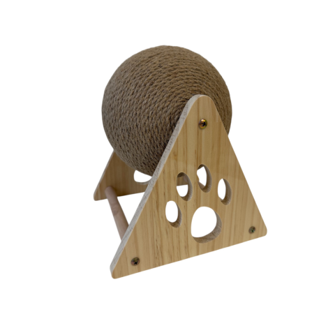 Modern, fa alapú macskajáték természetes jutakötél borítású gömbbel, amely tökéletes kaparáshoz és karmok ápolásához. Stílusos kiegészítő minden otthonba! A Kistappancs fa kaparógömb nemcsak egy praktikus macskajáték, hanem egyben elegáns lakberendezé