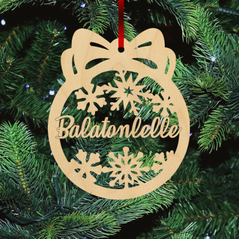 Egyedi ajándék ötlet: Balatonlelle fa karácsonyfadísz városneves dizájnnal. Hangulatos díszítés az ünnepekre!