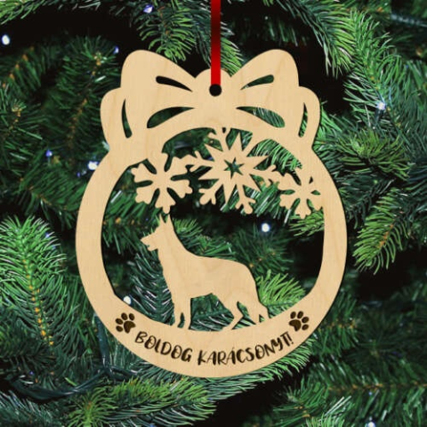 Gyönyörű karácsonyfadísz németjuhász kutya díszítéssel. Álomszép karácsonyi ajándék ötlet, amely meghittséget, szeretetet, vidámságot visz az ünnepi dekorációba