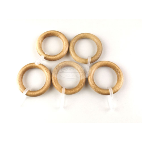 Fából készült függönykarika ráncszedő kampóval - VILÁGOS TÖLGY színben, melyet a webáruházunkban kínált 28 mm átmérőjű fa karnishoz ajánlunk. 10 db / csomag