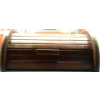 Sötétbarna színű, fából készült kenyértartó (morzsatartó nélkül). Hossza: 31 cm, mélysége: 26 cm, magassága: 16 cm. Kisebb kenyerek, péksütemények tárolására alkalmas.