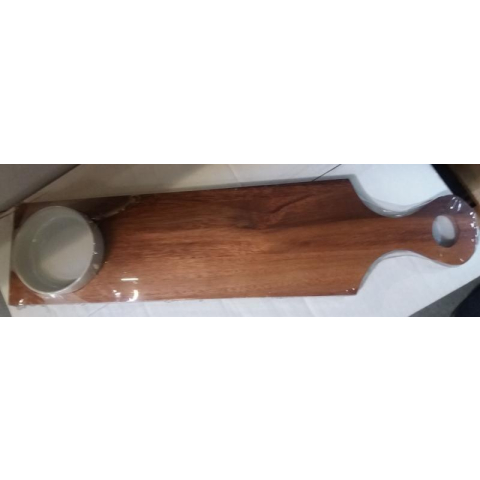 1 kép Fa kínáló tálca+porcelán tál, sötétbarna, 55X13X1,5 cm, 210008