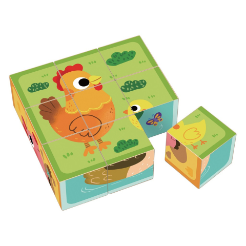 Fa kirakó kockák 9 db-os farm készségfejlesztő árgrafikon