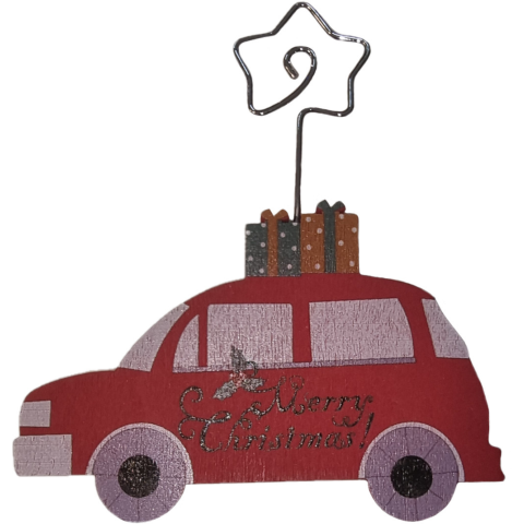 Fa kisautó névjegytartós 12cm - csomagos dekorációs kellék 1 kép