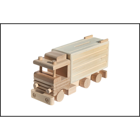 Fa kukásautó! És persely! Fa kukásautó, a tetején érmebedobó nyílással van ellátva, és perselyként is használható. az érméket a kukásautó hátulján nyitható ajtón keresztül vehetjük ki.