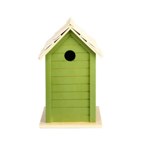 Fa madárház fűzöld színben. Ezt a madárházat leginkább a kék cinegéknek tervezték, a számukra megfelelő körülményekkel. Keress egy csendes, árnyékos, madárbarát helyet a madárház számára, ahol elhelyezheted a kertben vagy akár az