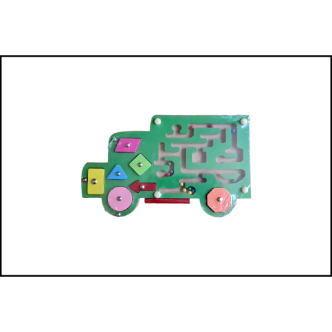 Mágneses labirintus teherautó A játék célja a kézügyesség fejlesztése. A mágneses ceruzával tudjuk a golyókat mozgatni a labirintusban és a síkidomokat kivenni és a helyükre tenni. Anyaga: Fa Mérete: Hosszúság: 26,5 cm Szélesség: 16 cm Vastagság: 1,