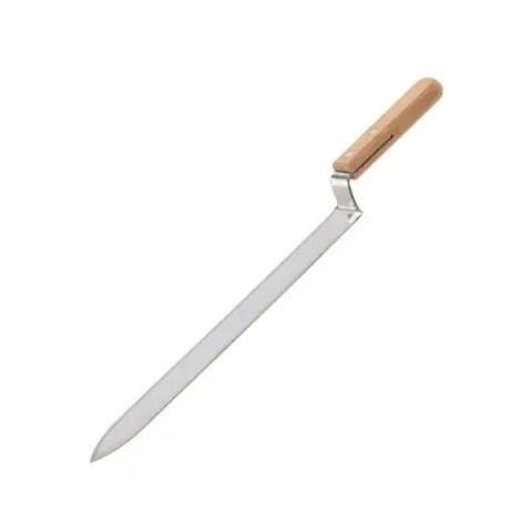A Fa nyelű rozsdamentes acél fedelezőkés jellemzői: A fa nyelű rozsdamentes acél fedelezőkés tökéletes eszköz a méhészeti munkákhoz. Speciálisan profilozott és mindkét oldalán élezett. Ergonomikus fa fogantyúval felszerelt. Lehetővé teszi a szabálytalanul felépített keretek precíz leválasztását is. Penge hossza: 28 cm Fogantyú hossza: 11 cm Penge szélessége: 3,4 cm Teljes hossza: 39 cm Anyaga: Rozsdamentes acél, Fa A csomag tartalma: 1 db Fa nyelű rozsdamentes