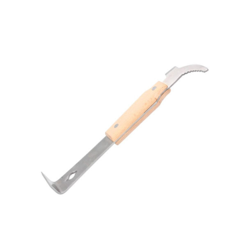 A Fa nyelű rozsdamentes acél méhész keret kaparó jellemzői: Funkcionális kaparó méhész keretek tisztításához. Az enyhén hegyezett élnek köszönhetően a kaparóval a kaptár falait és kereteit is meg lehet tisztítani. Kampóval felszerelt, ami különösen hasznos a keretek eltávolításához. Keretek szétterítésére, szennyeződések, viasz kaparására való. A szerszám fa fogantyúval rendelkezik, nagyon kényelmes a használata. Anyaga: Rozsdamentes acél Hossza: 26 cm