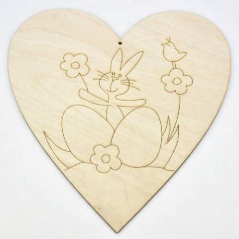 Fa nyuszi a szívben kifestő 20cm dekorációs kellék 1 kép