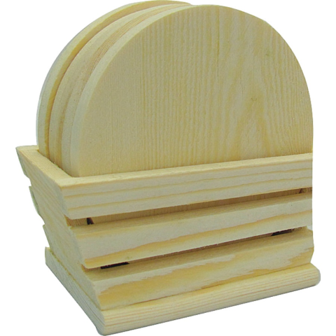 1 kép Fa poháralátét tartóval kerek 11,5cm x 6cm x 6,5cm