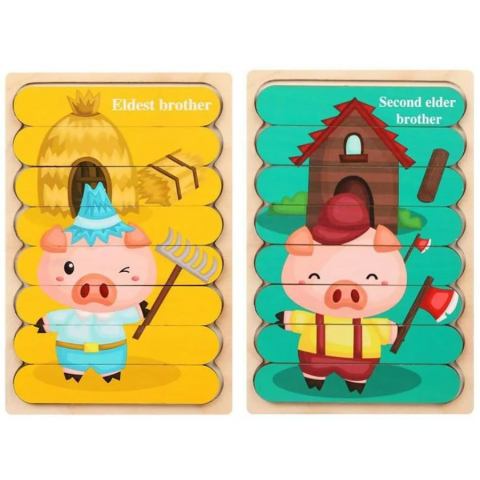1 kép Fa puzzle csíkok - kétoldalas - A három kismalac (mese)