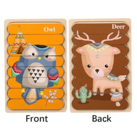 Fa puzzle csíkok - kétoldalas - Szarvas és bagoly