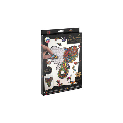 Korosztály: 7 - 14 év Fa puzzle - Elefánt, 132 db A Fa puzzle elefánt termék egy egyedi és kihívást jelentő kirakós, amely egy színes elefántot ábrázol. A puzzle 132 darabból áll, melyek különböző formájúak és méretűek, így a gyerekek és felnőttek számára egyaránt szórakoztató időtöltést nyújtanak. A termék ideális ajándék lehet, fejleszti a kézügyess