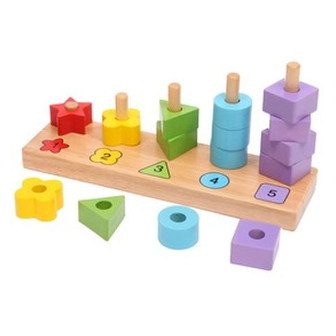 Fa számoló és formafelismerő készlet Rakd a színes formákat a megfelelő tüskére! A Fa számoló és formafelismerő készlet színes háromszögeket, négyzeteket és egyéb formákat tartalmaz, lyukkal a közepükön, amiket a fa abakusz lap tüskéire lehet feltenni