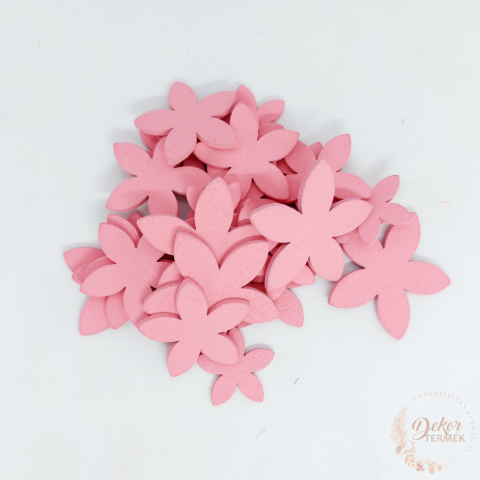 Méret: 3-4-5 cm Szín: málna, lila, krém Anyag: fa Tömeg: 30 gramm Egy csomagban 30 db fa virág található vegyes méretben.