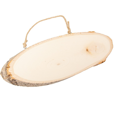 Tedd fel kérdésed a(z) Fa szelet ovális juta akasztóval 12x30cm termékről!