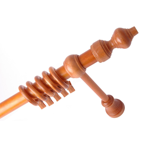 Szimplakrnis garnitúra szett. Fából készült 28 mm - es átmérőjű. A csomag tartalmazza a felszereléshez és a függöny rögzítéséhez szükséges kiegészítőket.