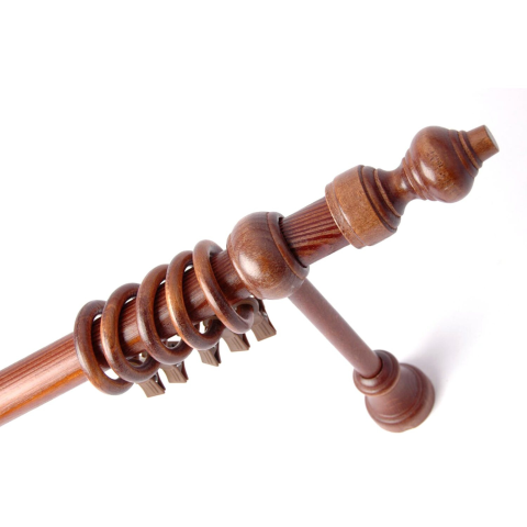 Szimplakrnis garnitúra szett. Fából készült 28 mm - es átmérőjű. A csomag tartalmazza a felszereléshez és a függöny rögzítéséhez szükséges kiegészítőket.