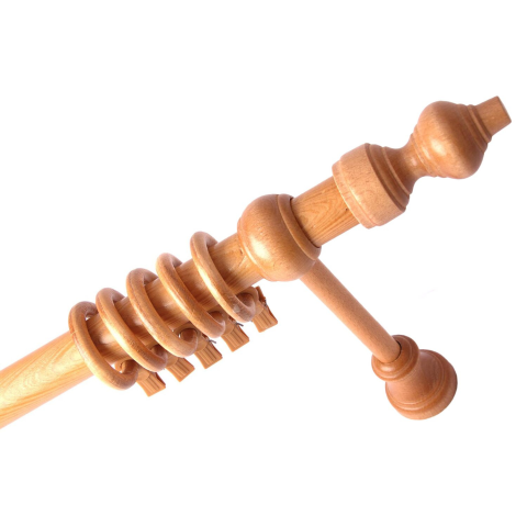 Szimplakrnis garnitúra szett. Fából készült 28 mm - es átmérőjű. A csomag tartalmazza a felszereléshez és a függöny rögzítéséhez szükséges kiegészítőket.