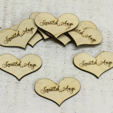 Fa szív "Szeretlek Anyu" 5cm x 3cm 1db dekorációs kellék árgrafikon