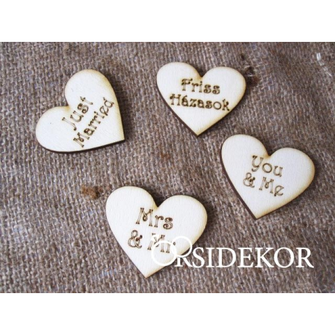 Fa szívek fából, felirattal, a vintage stílus jegyében! Bájos esküvői dekorációs kellék, festhető, dekorálható, ragasztható, köszönetajándék is díszíthető vele, de bármilyen dekorációs kompozíció kiegészítő elemeként is használhatjátok. A vendégasztalo