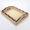 Íves oldalú, natúr füles tálca szett. Használható vendégek fogadásakor kinálótálnak,vagy reggelinél tálcának. Akár dekorációs célra is használhatjuk, mint egyedi készítmény alap. Natúr alapot festhetjük, dekupázsolhatjuk, díszíthetjük ízlés szerint. Méret