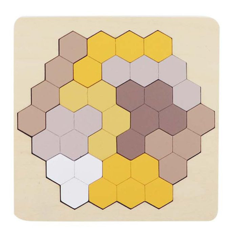 Fa tetrisz játék (négyszög, barna-sárga) fajáték 1 kép