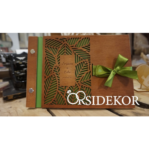 1 kép Fa vendégkönyv modern levél mintával