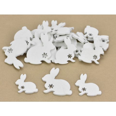 Fehér színű virágmintás nyulak, vegyes méretekben húsvéti dekoráció megalkotásához. Ragaszthatod (pálcára) dekorációhoz, vagy masnival és szalaggal díszítheted stb.3 különböző méret: S: 3,5cm, M: 4cm, L:5cm