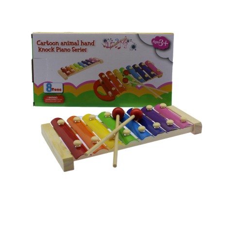 Fa xilofon, 8 hangos, szivárvány színű, 25x13 cm dobozban