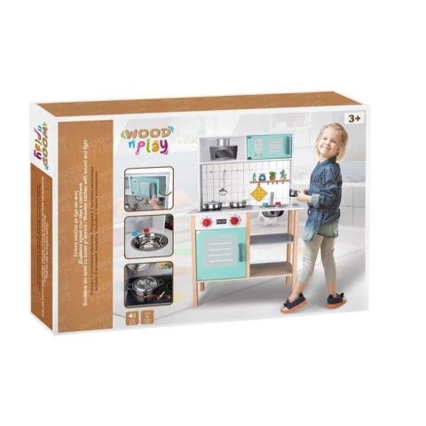 Fa Játékkonyha Fényekkel és Hangokkal - 60x30x92,5 cm 👨🍳👩🍳 Ez a gyönyörű fa játékkonyha órákig tartó szórakozást biztosít a kis séfeknek! Valósághű fényekkel és hangokkal, valamint 5 fém kiegészítővel felszerelve, a játék még izgalmasabbá válik...