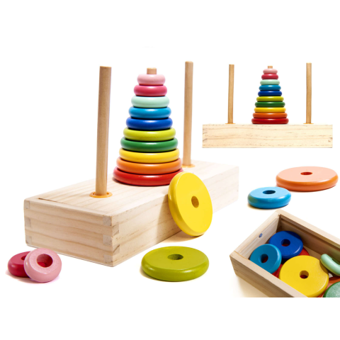 Szivárvány Hanoi Torony Fa Játék: Fejlesztő Játék Kicsiknek és Nagyobb Gyermekeknek 🌈 Ez a színes, fából készült Hanoi torony remek szórakozást és fejlesztést kínál a gyerekeknek. A szivárványszínű korongok vonzzák a figyelmet, miközben a játék fejl...