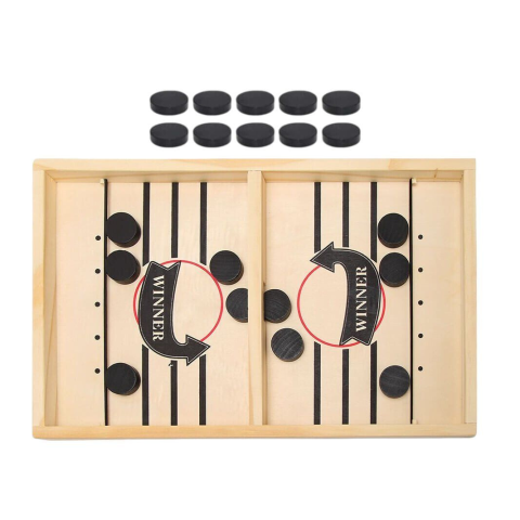 Kényeztesse magát a kikapcsolódással a TableHockey segítségével! A fából készült társasjáték órákon át őrült szórakozást nyújt.
