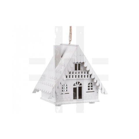 Fából készült világító házikó akaszthatós karácsonyfadísz árgrafikon
