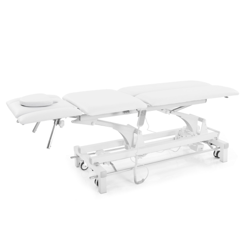 A modern, kétmotoros Fabulo Allegra XS elektromos kezelőágyat kifejezetten masszázshoz, fizioterápiához és rehabilitációs kezelésekhez tervezték. Kiemelkedik sokoldalú beállítási lehetőségeivel, a páciens számára biztosított maximális kényelemmel és a terapeuta munkáját megkönnyítő funkcióival. Az ágy két nagy teljesítményű motorral működik - az egyik a magasság elektronikus szabályozását végzi (48–92 cm között), míg a másik a deréktáji szakasz d