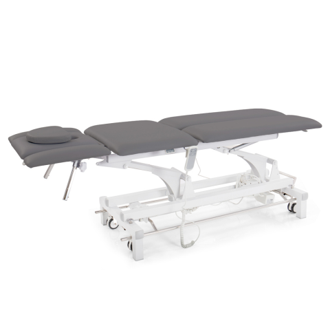 A modern, kétmotoros Fabulo Allegra XS elektromos kezelőágyat kifejezetten masszázshoz, fizioterápiához és rehabilitációs kezelésekhez tervezték. Kiemelkedik sokoldalú beállítási lehetőségeivel, a páciens számára biztosított maximális kényelemmel és a terapeuta munkáját megkönnyítő funkcióival. Az ágy két nagy teljesítményű motorral működik - az egyik a magasság elektronikus szabályozását végzi (48–92 cm között), míg a másik a deréktáji szakasz d