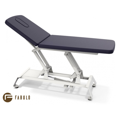 A csúcsminőségű fém szerkezettel gyártott, professzionális, kétrészes Fabulo Camino Russell XR1 elektromos masszázságy magassága a lábvezérlővel elektromosan állítható.
