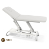 A csúcsminőségű fém szerkezettel gyártott, professzionális, kétrészes Fabulo Camino Russell XR1 elektromos masszázságy magassága a lábvezérlővel elektromosan állítható.