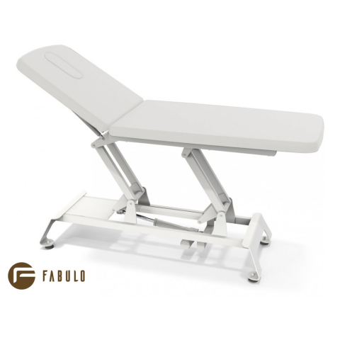 A csúcsminőségű fém szerkezettel gyártott, professzionális, kétrészes Fabulo Camino Russell XR1 elektromos masszázságy magassága a lábvezérlővel elektromosan állítható.