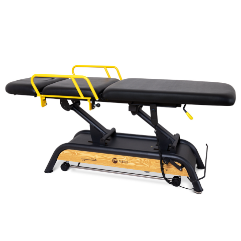 A professzionális, háromrészes masszázságy elektromos magasságállító rendszerrel rendelkezik, amely 53 és 95 cm között szabályozható, így könnyedén igazítható az