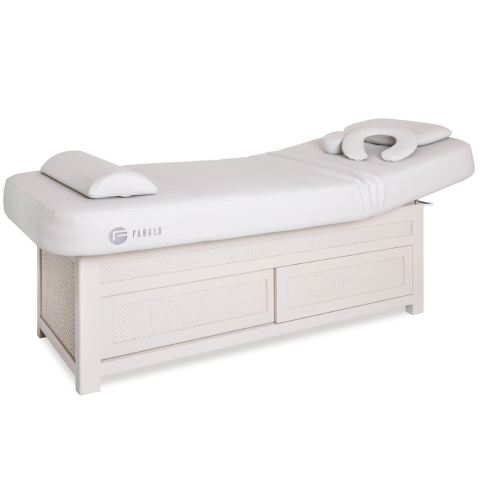 A professzionális Fabulo Spa Harmony 301 wellness ágy masszív, szürke, rattan kivitelezésű fa szerkezettel rendelkezik. A SPA ágy két fokozatban szabályozható fűthető fekvőfelülettel van felszerelve. Az alul található, az ágy mindkét oldalán tolóajtóval ellátott szekrénynek köszönhetően eszközei mindig kéznél és a megfelelő helyen lesznek.