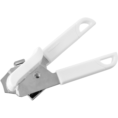 A Fackelmann konzervnyitó nyele műanyag, vágórésze pedig krómozott, teljes hossza 18 cm.