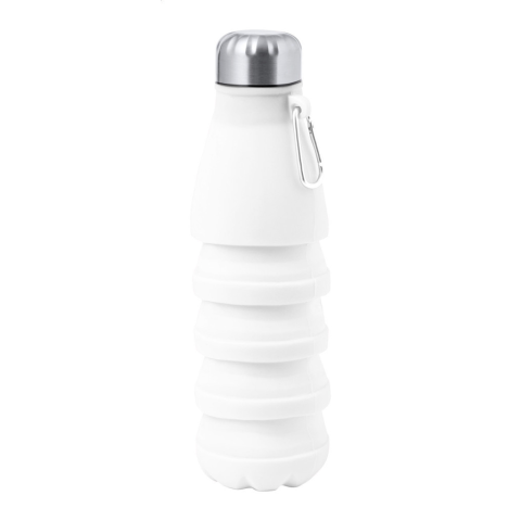Szilikon, összecsukható sportkulacs rozsdamentes acél kupakkal és karabinerrel. 550 ml.