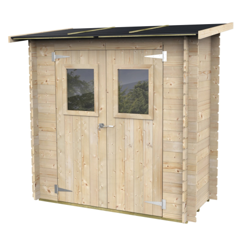 Olaszországban gyártott Argenta kerti faház, 19 mm vastag természetes fenyőfából, sarkain megerősített, kétszárnyú ajtó plexiüveggel, 12 mm vastag OSB3 tető, palából készült 3 mm vastag szürke panellel borított, 12 mm vastag OSB3 padló autoklávban impregnált támasztólemezekkel. A készlet tartalmazza a szereléstechnikai anyagokat és az összeszerelési útmutatót. A fa PEFC tanúsítvánnyal rendelkezik, amely garantálja, hogy olyan erdőkből származik, amelyeket