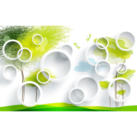 1 kép Fák és körök tapéta, 400 x 250 cm