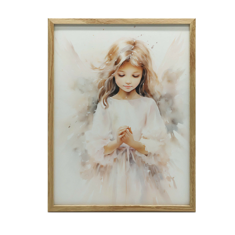 Angyalkép falikép sötétbarna keretben - 50x70 cm Hozd be a békét és a harmóniát otthonodba ezzel a gyönyörű angyalképpel! A 50x70 cm-es kép sötétbarna fából készült keretben kapható, ami elegáns és időtlen megjelenést kölcsönöz neki. A 230 gsm-es mat...