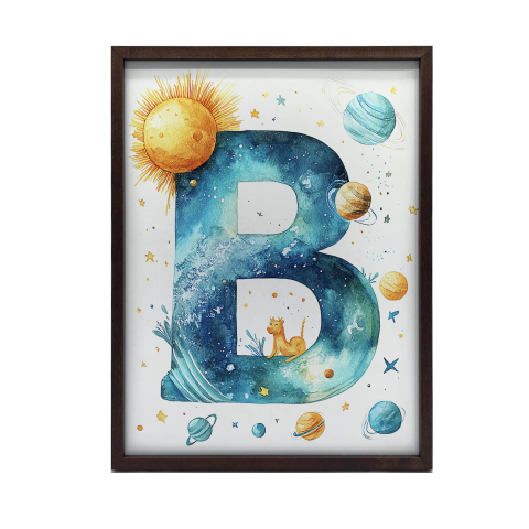 Kozmikus B betűs faliplakát: Varázslatos univerzum a szobájában ✨ Ezzel a gyönyörű, kézzel festett faliplakáttal egyedi hangulatot varázsolhat otthonába. A képen egy B betű látható, melyet kozmikus motívumok, bolygók és csillagok díszítenek. Egy ara...